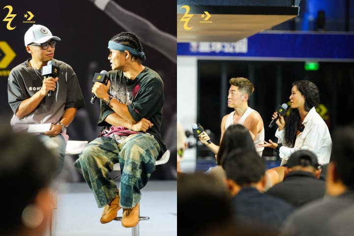 在白玉兰广场的夜色中,SHAI 001 家族全新配色率先揭幕,掀开了整场发布的序章。媒体分享会上,篮球评论员、街球先锋与前职业运动员们从不同视角谈及篮球与风格的共生关系,既畅谈了 SGA的成长与个人风格,也呼应了 Converse 始终与篮球紧密相连的文化基因。对他们而言,SHAI 001 不仅是一双高性能鞋款,更承载了将运动与生活紧密连接的态度,让它超越功能本身,成为风格与表达的载体。从上世纪的球场传奇到今天的全新签名鞋,Converse 正在以更具创意的方式回归赛场,并将这种精神延续到当下的年轻一代。随之登场的3v3 篮球表演赛,则通过激烈的攻防与自由的发挥将这一精神具象化,让观众在真实对抗中直观感受到 SHAI 001 的竞技能量与独特气场。