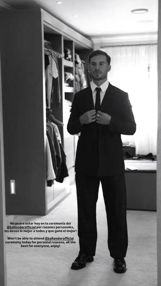 麦卡利斯特在ins透露:“今天因个人原因无法参加金球奖颁奖典礼,祝大家一切顺利,尽情享受吧!”