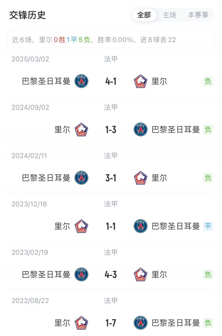巴黎联赛5胜1负积15分,近期各赛事2连胜;里尔3胜1平2负积10分,联赛遭遇2连败。巴黎对阵里尔已连续8场不败(7胜1平)。